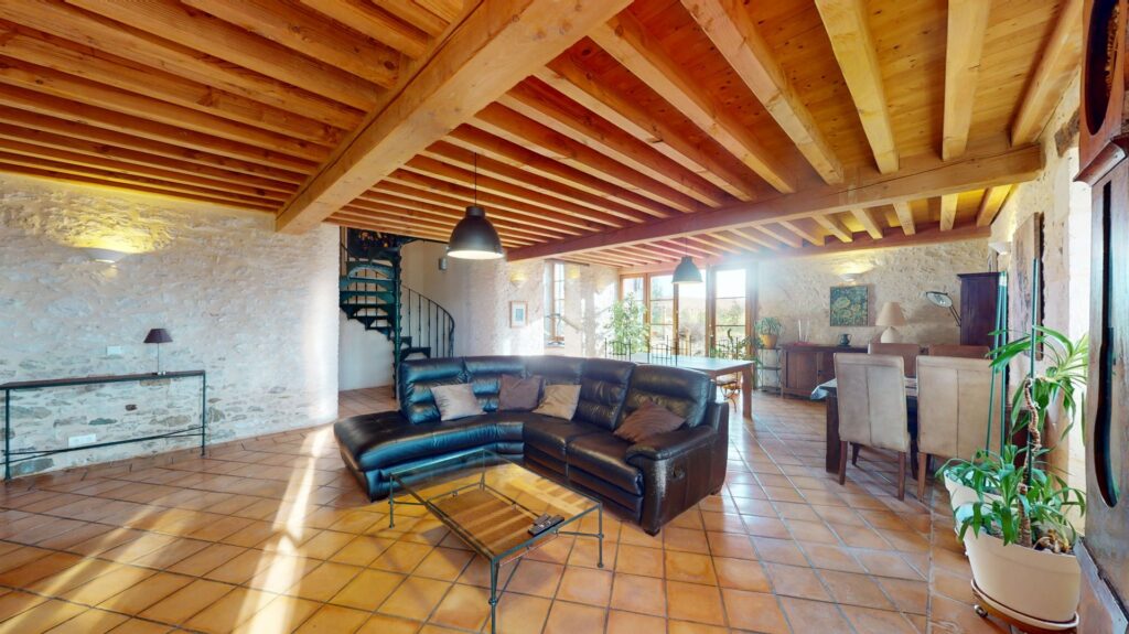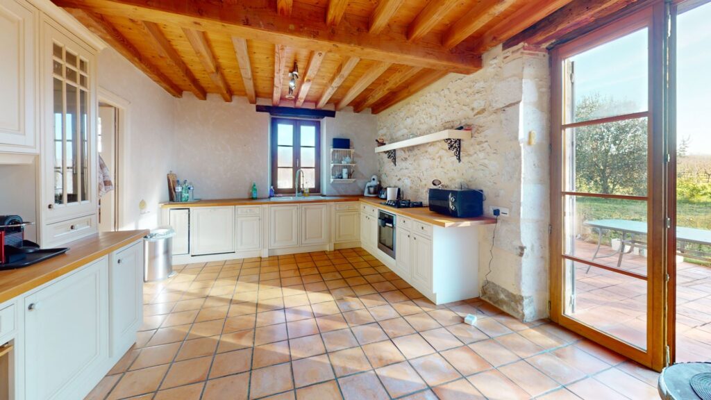 Découvrez un art de vivre exceptionnel dans cette élégante propriété, idéalement située au cœur de la campagne, à quelques minutes d’un village médiéval plein de charme. Véritable alliance entre authenticité et confort contemporain, cette demeure d’environ 260m² environ déploie des volumes généreux sur deux niveaux, parfaitement pensés pour une vie raffinée. Dès l’entrée, le ton est donné : poutres apparentes, murs en pierre et matériaux nobles composent une atmosphère chaleureuse et intemporelle. Le vaste séjour, lumineux grâce à de larges ouvertures, s’organise autour d’une superbe cheminée en pierre, créant un cadre idéal pour recevoir ou se détendre au coin du feu. Au cœur de la maison, une cuisine élégante et fonctionnelle, habillée de meubles crème et dotée de généreux plans de travail, ravira les amateurs de gastronomie. Elle communique avec une arrière-cuisine et un grand garage, offrant un confort de vie optimal au quotidien. La suite parentale de plain-pied constitue un atout majeur : chambre spacieuse, bureau attenant et salle de bain luxueuse équipée d’une douche à l’italienne, d’une baignoire sur pieds et de WC. Le rez-de-chaussée accueille également une seconde chambre ainsi qu’une salle d’eau complémentaire. À l’étage, deux belles suites supplémentaires offrent calme, intimité et vues apaisantes, parfaites pour accueillir famille et invités dans les meilleures conditions. À l’extérieur, de vastes terrasses prolongent harmonieusement les pièces de vie, invitant à profiter des différentes lumières de la journée et des panoramas remarquables sur le village, les vignes et les bois environnants. La piscine orientée plein soleil, le jacuzzi et le sauna installé dans une dépendance renforcent le caractère résolument bien-être de la propriété. Proposant un équilibre rare entre élégance intérieure et cadre naturel préservé, cette résidence est bien plus qu’une maison : c’est une invitation à savourer pleinement l’art de vivre du sud-ouest, dans un environnement privilégié et inspirant. Les informations sur les risques auxquels ce bien est exposé sont disponibles sur le site Géorisques : www.georisques.gouv.fr