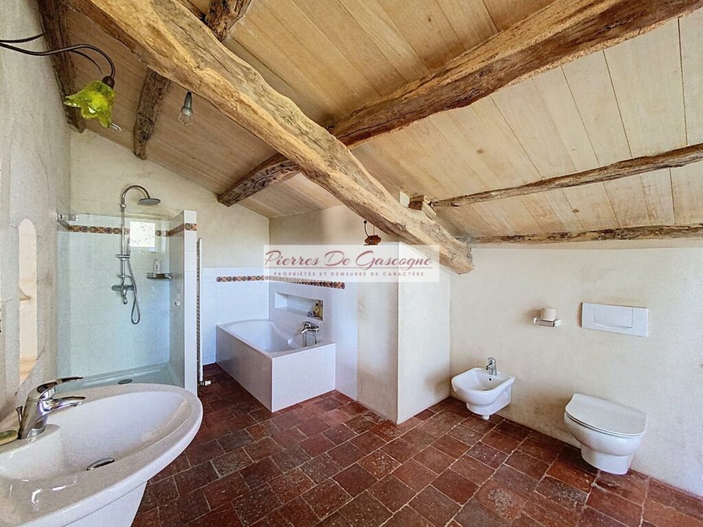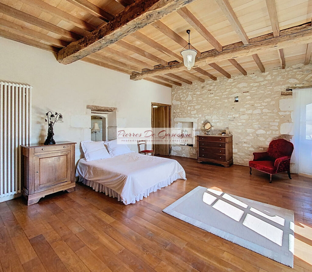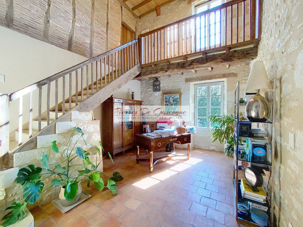 Située dans un environnement remarquable présentant une quiétude constante à seulement 15 mn d’Auch, cette magnifique propriété bâtie sur la hauteur, vous offre une qualité de vie et une intimité garanties sur ses 8 ha de terres et de bois. L’élégante rénovation à été réalisée avec des matériaux naturels de qualité et avec beaucoup de goût. Ses imposants murs de pierre et ses belles portes en chêne en font une bâtisse dans laquelle on se sent en sécurité. Alentour, les forêts et les champs, verdoyants et dorés font de ce lieu l’un des endroits les plus enchanteurs de notre belle Gascogne. Erigée sur 2 niveaux et 280 m2 habitables, cette demeure présente 7 pièces dont 4 chambres et 3 salles de douche et 1 salle de bain/douche. Un séjour de plus de 40m2 comprenant une cuisine sur mesure en chêne massif équipée d’une plaque à induction, d’un billot et tout le matériel nécessaire aux amateurs de gastronomie. Un bureau au centre de la maison présentant une hauteur sous plafond de 8 m ; plus loin, un salon de 30m2 comprenant une grande cheminée et de belles tomettes d’époque. 1 première chambre se trouve au RDC avec une sortie indépendante et sa salle d’eau. Une seconde chambre de 40m2 au RDC, plus moderne, avec sa salle d’eau comportant également une sortie indépendante par une baie ouvrant sur une magnifique vue sur la campagne gersoise. Une buanderie et une chaudière à granulés de bois avec son silo au dessus garantissent un confort bien agréable grâce au chauffage au sol sous tomettes d’époque partout au RDC qui permet également une économie d’énergie non négligeable (consommation annuelle d’environ 1500 €). À l’étage 2 chambres de plus de 35m2 avec leur salle de bain privative. Au niveau des dépendances, une grange en pierres de 130m2 permet d’imaginer des projets pour les artistes, ou bien créer un gîte ou un pool house, De nombreux sentiers partent de cette belle propriété pour se promener à pied ou à cheval, dans la nature environnante encore préservée…. Les informations sur les risques auxquels ce bien est exposé sont disponibles sur le site Géorisques : www.georisques.gouv.fr Les informations sur les risques auxquels ce bien est exposé sont disponibles sur le site Géorisques : www.georisques.gouv.fr