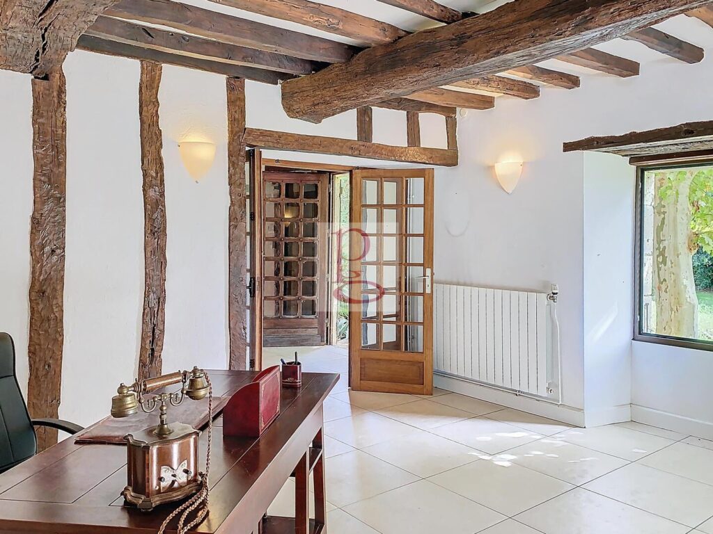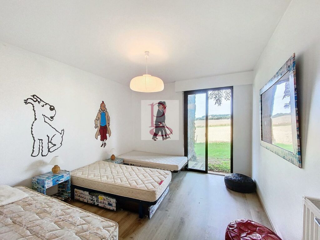 Belle propriété composée d’une maison principale (275m2) en parfait état à laquelle est accolée une maison d’amis (105 m2) de 3 chambres. L’entrée de la propriété est défendue par un portail électrifié avec digicode et télécommande qui s’ouvre sur une belle allée arborée. Dans la maison d’habitation principale, un vaste vestibule avec vestiaire et toilettes donne accès à une cuisine spacieuse ainsi qu’à un vaste espace rassemblant la salle à manger, le salon TV ainsi que le salon d’été dont les vastes baies vitrées s’ouvrent sur la terrasse suivie de la piscine. A l’étage, surplombant le salon, une coursive bibliothèque, un bureau, trois belles chambres et une très spacieuse salle de bain. La maison d’amis ou gîte propose des pièces de dimensions plus réduites mais très confortables avec, en rez-de-chaussée, un séjour avec cuisine américaine, deux chambres et une salle d’eau ; à l’étage une chambre et un vaste espace permettent l’installation d’une salle de jeu, un atelier d’artiste, …. Le chauffage central est assuré par chaudière au gaz GPL. Assainissement individuel à mettre aux normes Double vitrage, Alarme. Le terrain de presque 1 Ha est arboré et bien délimité. On y trouve une mare et un puits qui peut être remis en fonction. Abri pour 2 voitures et parking pour 2 voitures également. La piscine est chauffée par pompe à chaleur . A 5 minutes des commerces, cette propriété est une véritable opportunité. Les informations sur les risques auquel ce bien est exposé sont disponibles sur le site Géorisques www.georisques.gouv.fr