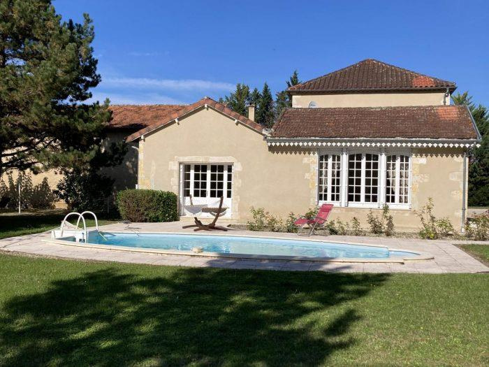 C’est au bout d’une belle allée privée que nous avons découvert cette jolie maison en pierre de190 m², rénovée avec goût et entourée d’un hectare de parc arboré entièrement clôturé où a été installée une jolie piscine. La maison offre, en rez-de-chaussée, une cuisine équipée et aménagée , une salle à manger, un séjour spacieux avec cheminée et poêle à bois, une chambre, une salle de bains, un wc, une buanderie. A l’étage: deux chambres, un bureau et une salle d’eau. Un hangar de 140 m² permet d’abriter les voitures et un petit bâtiment avec étage pourrait être aménagé en maison d’amis . Belle propriété à visiter sans délai car elle ne restera pas longtemps sur le marché. Les informations sur les risques auxquels ce bien est exposé sont disponibles sur le site Géorisques: www.georisques.gouv.fr