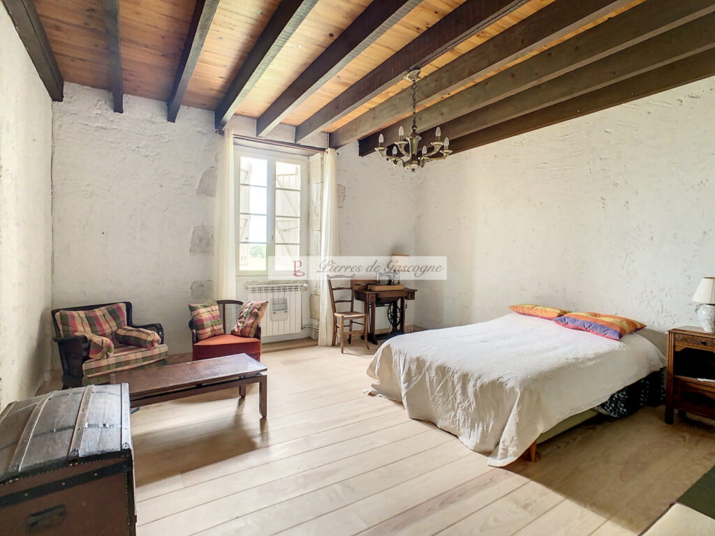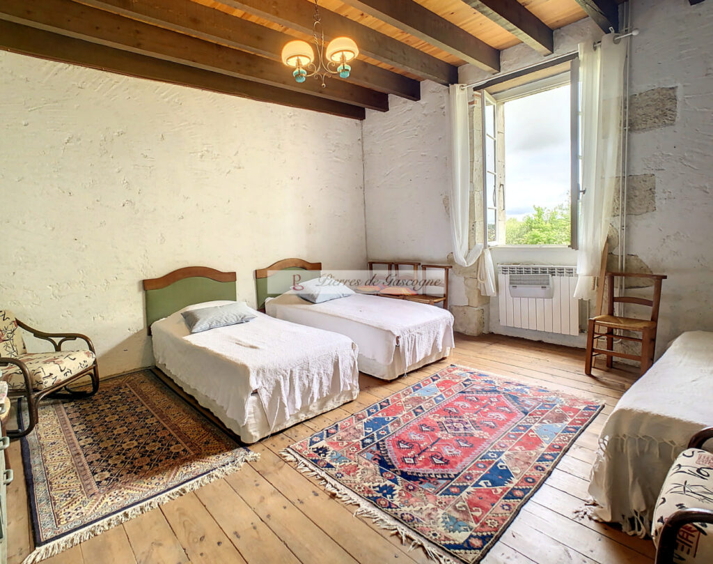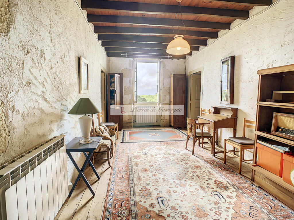 Voici un bien qui répond à ce que vous recherchez : une maison typiquement gasconne avec un environnement exceptionnel, loin de nuisances de tout type. Le large couloir central, où autrefois les anciens faisaient banquet en dressant une longue table, nous conduit dans l’ancienne cuisine avec son évier en pierre devenu le salon où la cheminée ancienne prend l’espace de tout un pan de mur, ensuite la salle à manger précède l’actuelle cuisine qui a été créée en empiétant sur la dépendance attenante. De l’autre côté du couloir, une jolie pièce avec cheminée peut être dédiée à un bureau, une chambre, un coin lecture ,… Deux salles d’eau et un WC complètent le rez-de-chaussée. L’étage ,traversé également par un large couloir central est divisé en 4 jolies chambres. Le terrain d’1 Ha environ domine la campagne environnante et permet par beau temps d’apercevoir les Pyrénées. Dans la dépendance, un box pour un mulet ou un âne pourrait être une jolie cuisine d’été. Habitable et confortable, il n’y aura qu’à ajouter votre petite touche pour la personnaliser. Les informations sur les risques auquel ce bien est exposé sont disponibles sur le site Géorisques www.georisques.gouv.fr